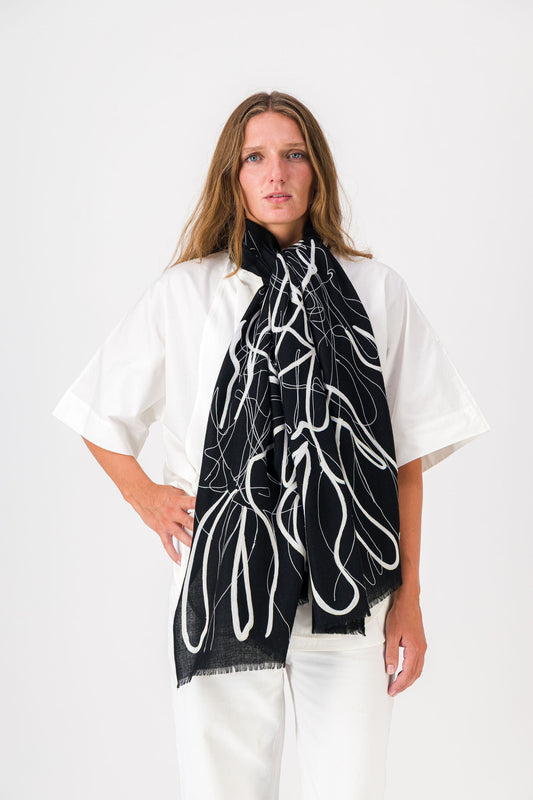 TANGRAM - Silk bandana BEIGE 238 & BLACK