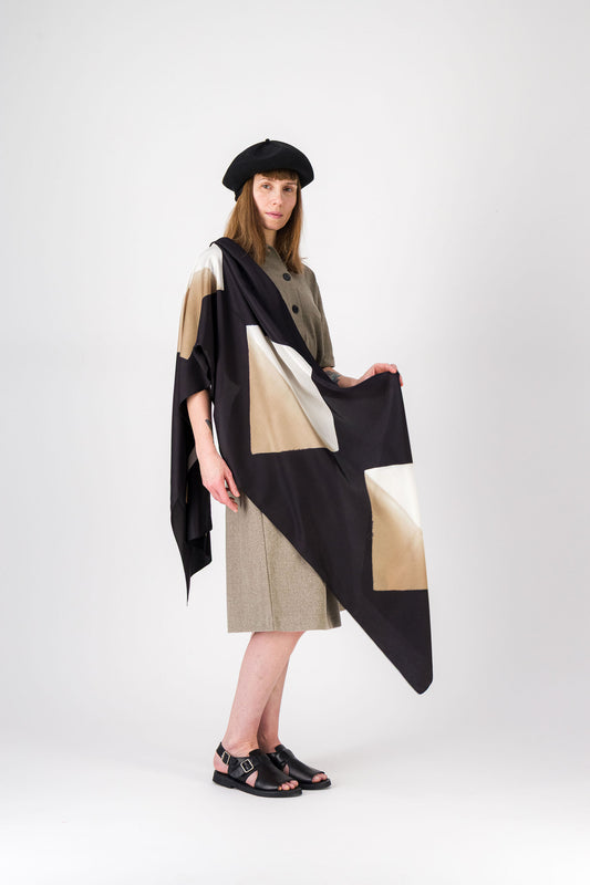 Origami - Silk Stole BEIGE 134-D & BLACK