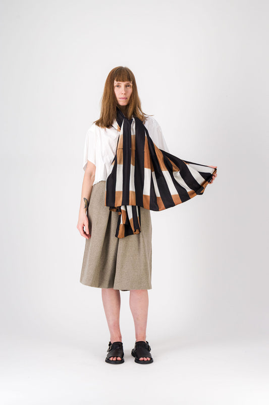 Rayures - Silk Scarf BEIGE & BLACK