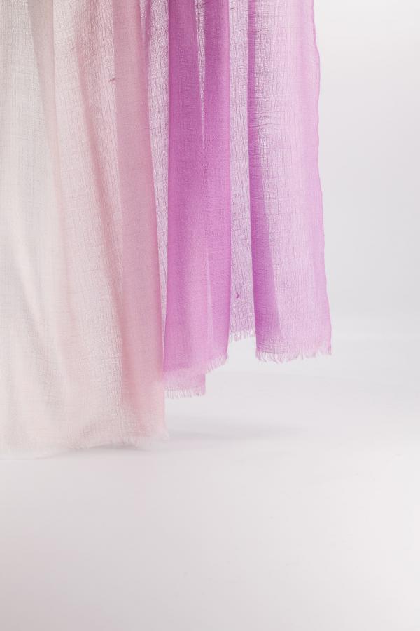 Une étole poids plume, 100% cashmere, tissée main à Srinagar. Teinture en dégradé, effet ombré.