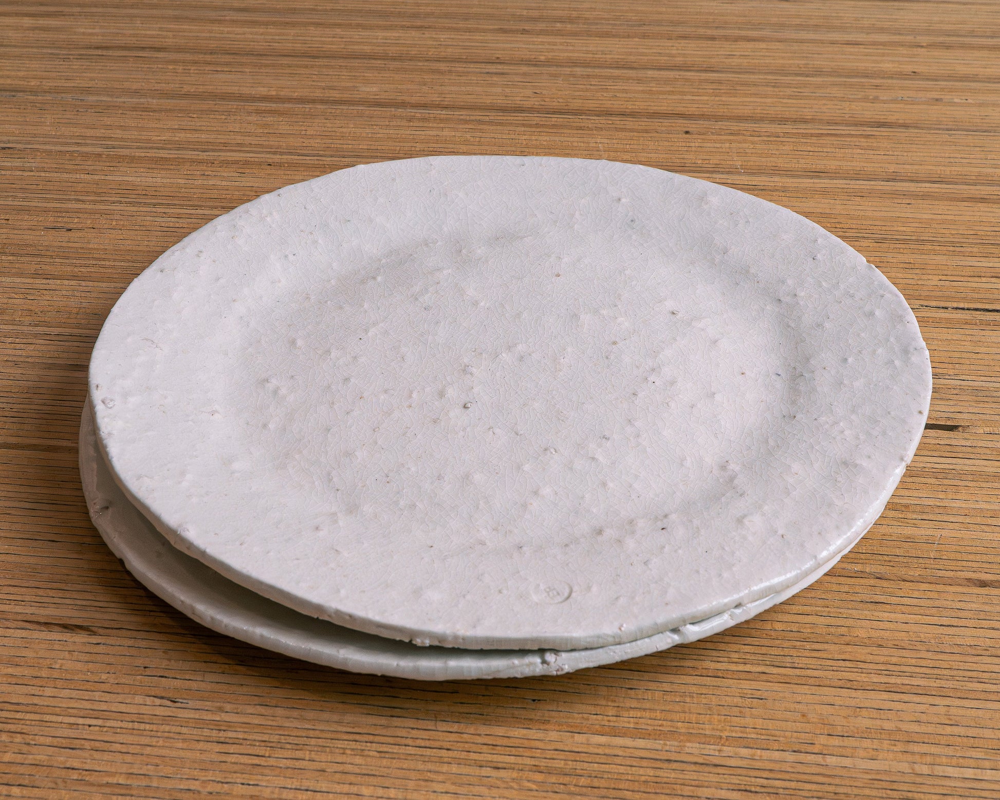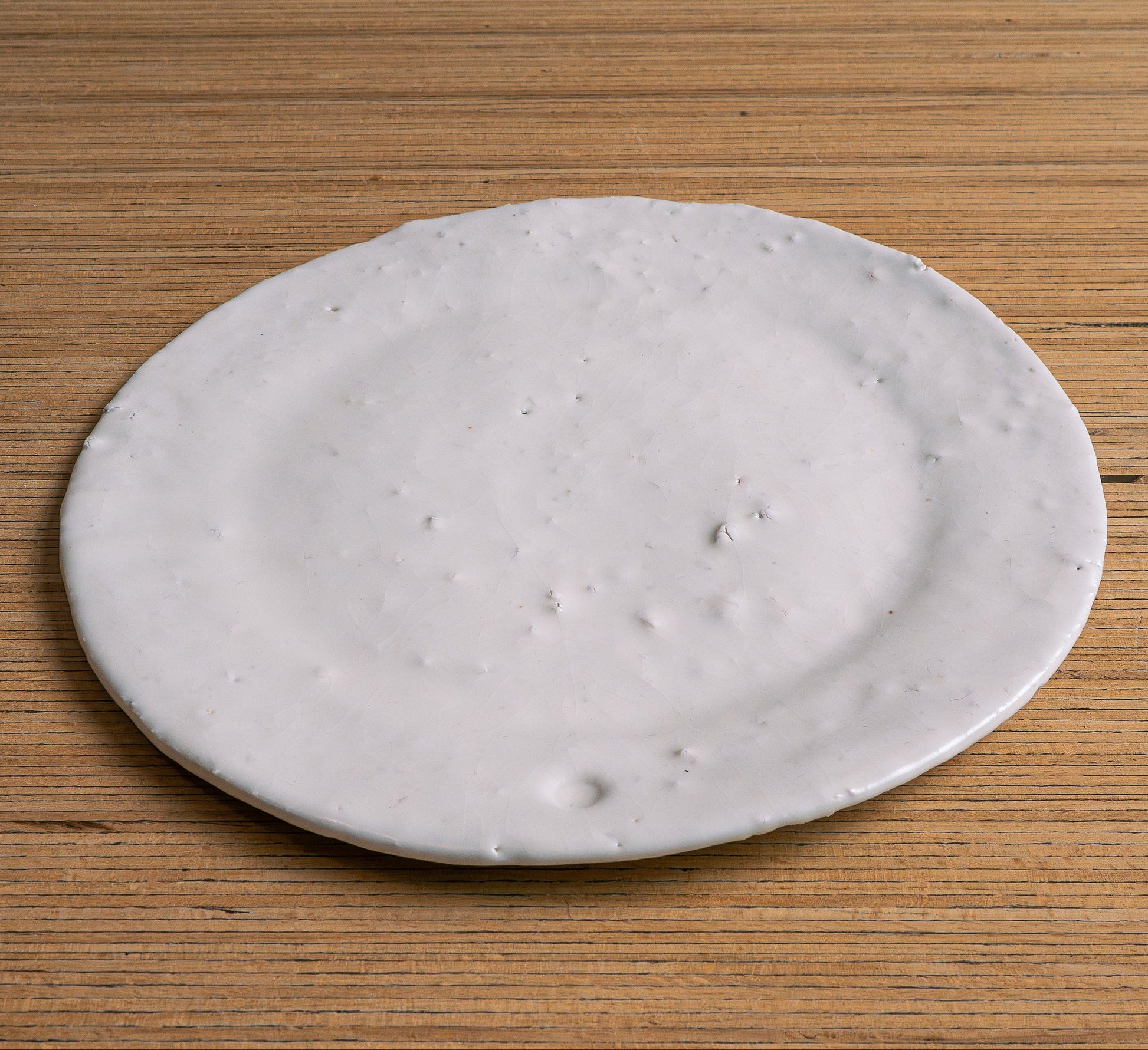 Grande assiette porcelaine & kaolin. Estampage empreinte textile.