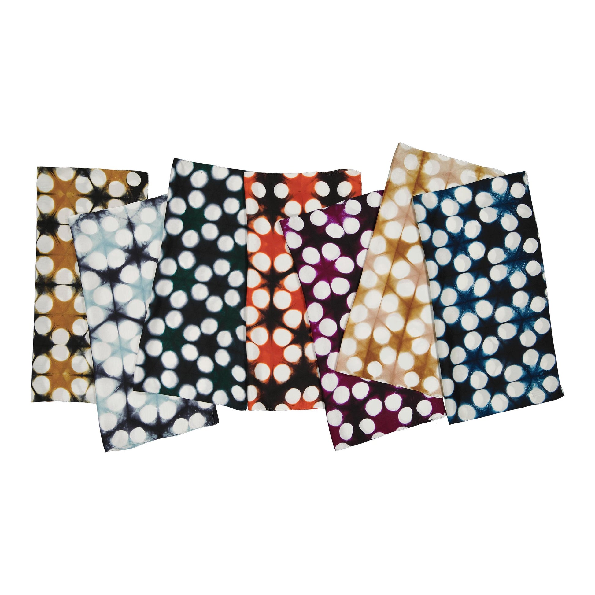 A silk bandana, using an artisanal dye process to create these geometric shapes.