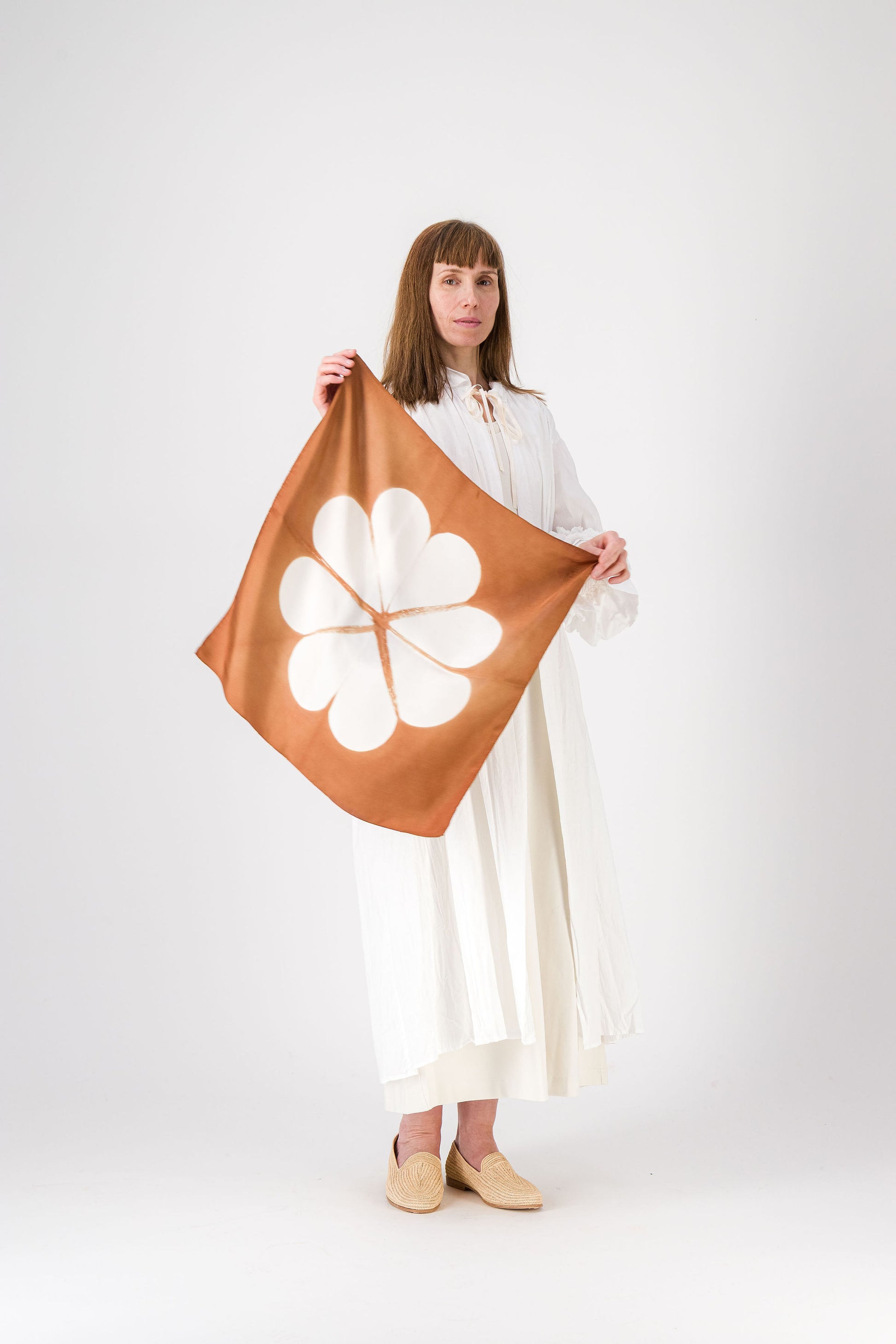 MARGUERITE - Silk Bandana CHESTNUT 112 & AZUR 32