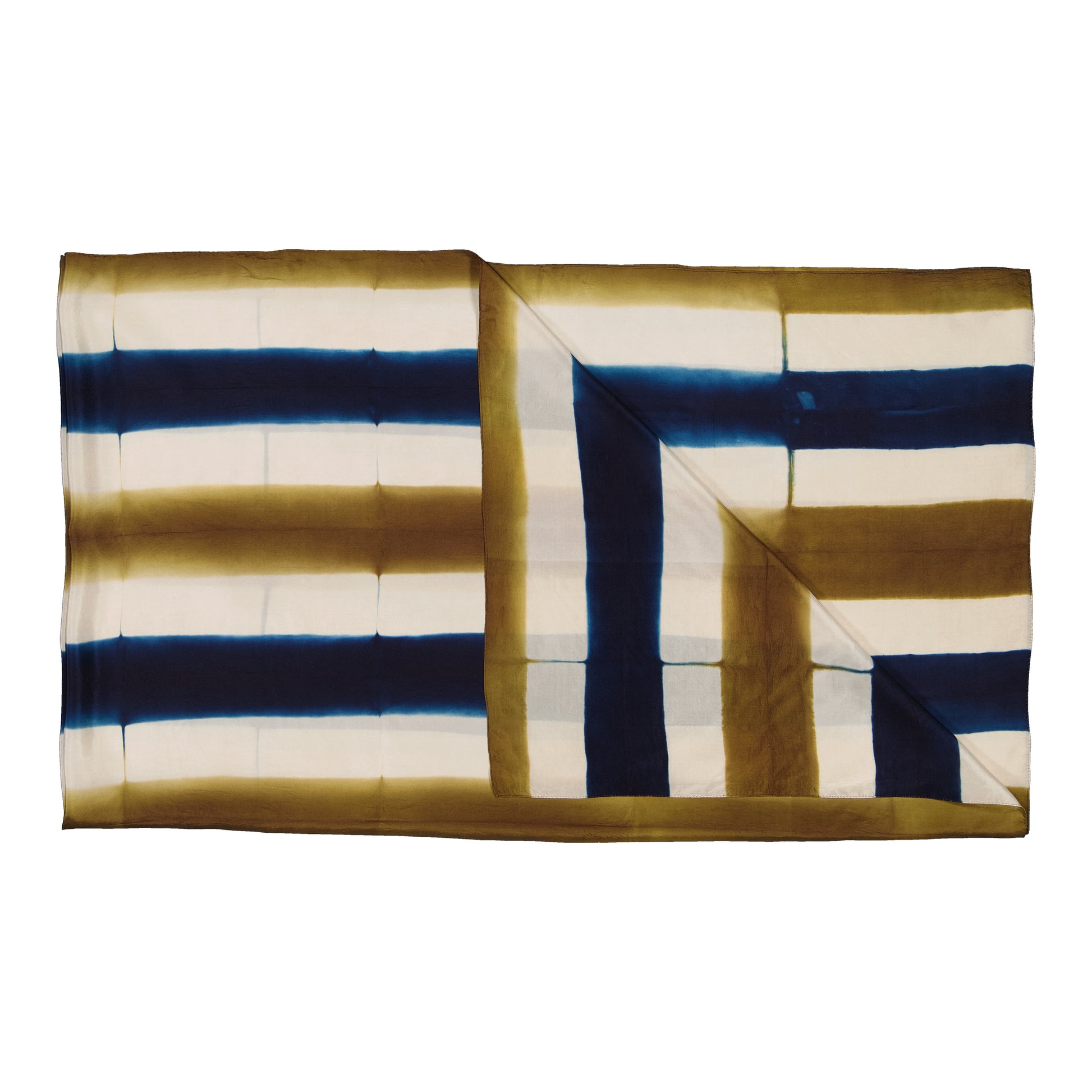 Hand dyed silk scarf, using “itajime” technique. Each design is unique. Hand rolled.