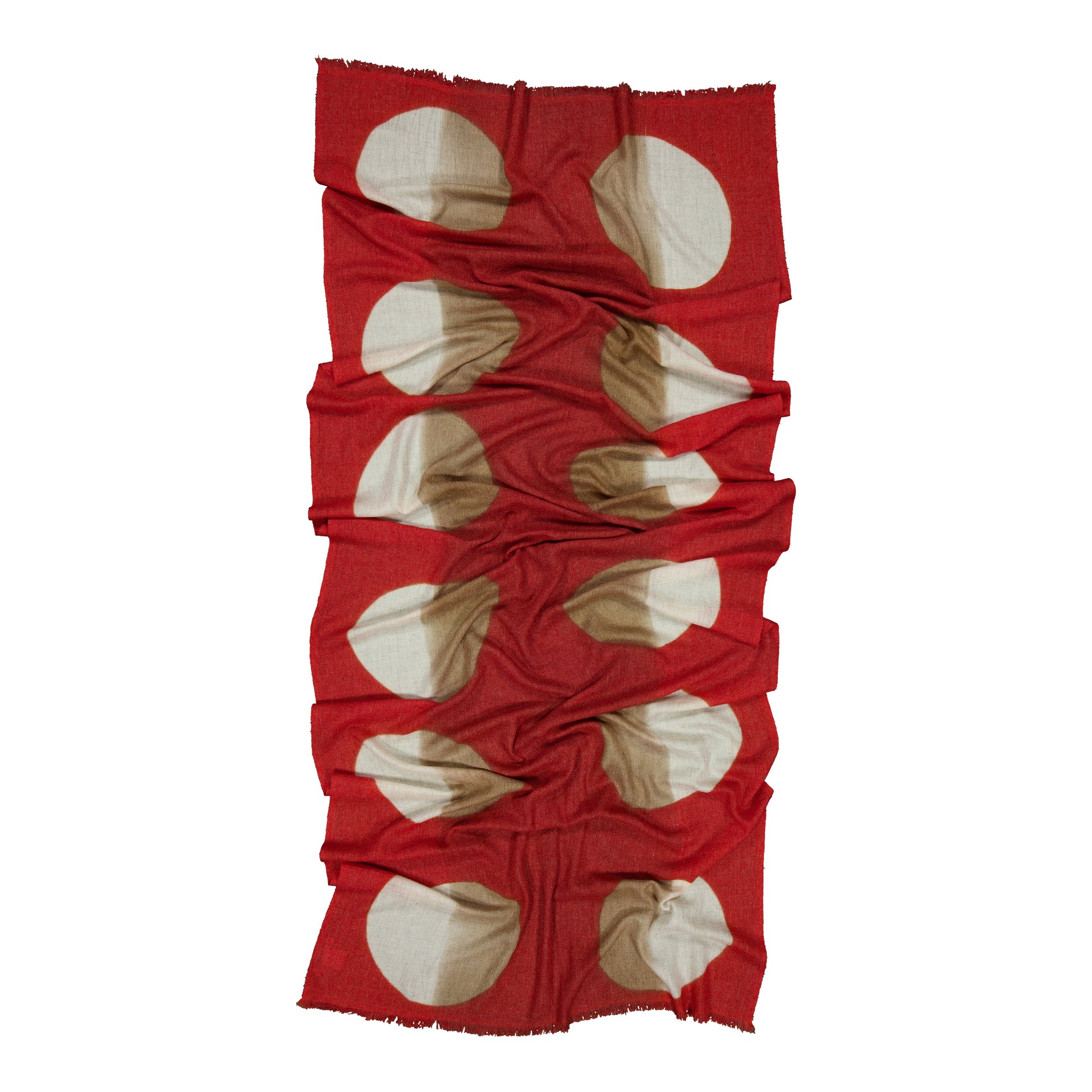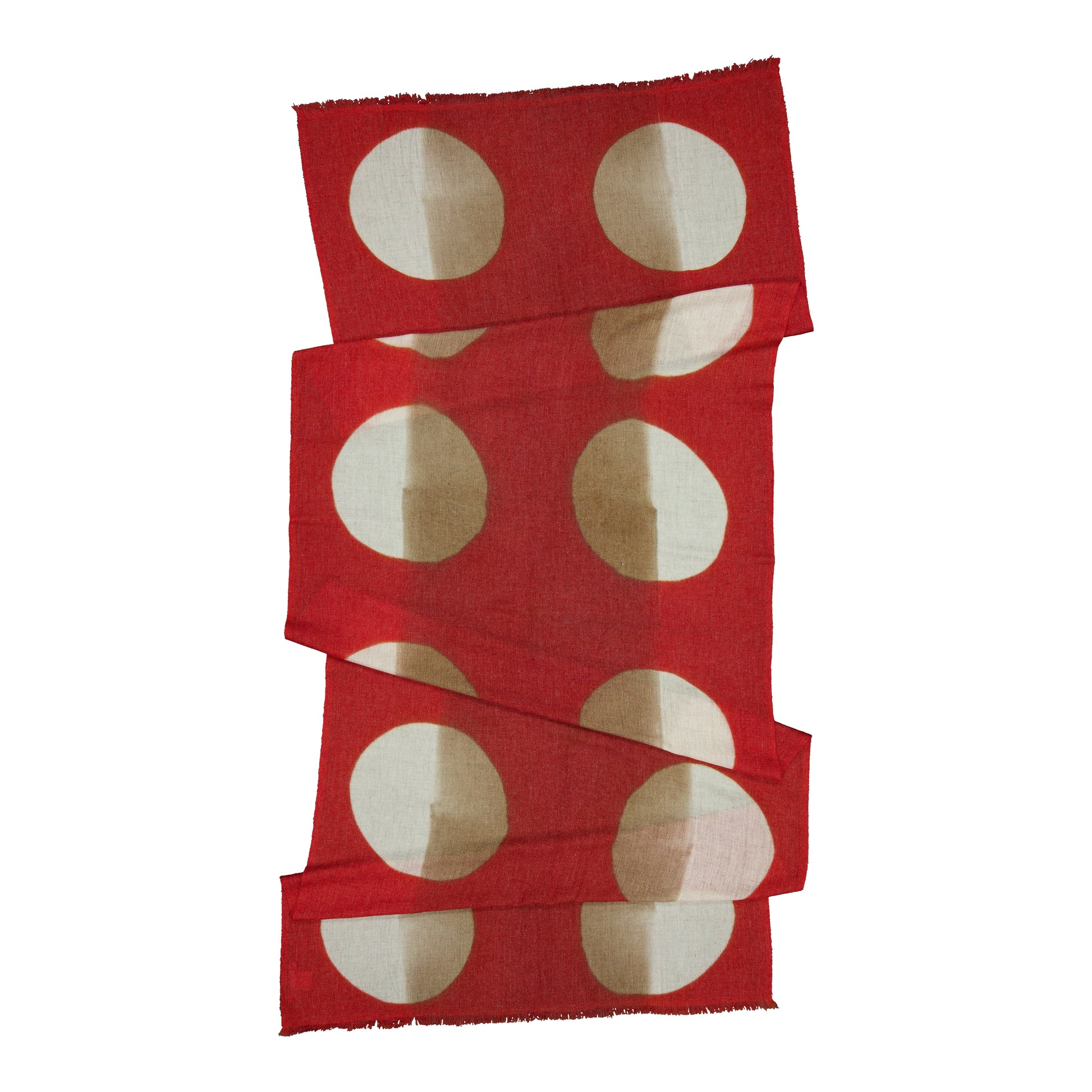 « PARADE », une écharpe en mérinos aux motifs de pois surdimensionnés.