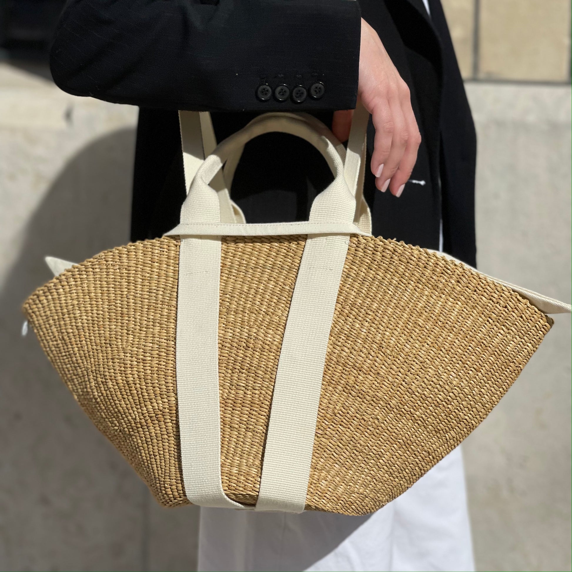 Matières : Base - Herbe à éléphant, Anses - Polyviscose, Pochon - Coton