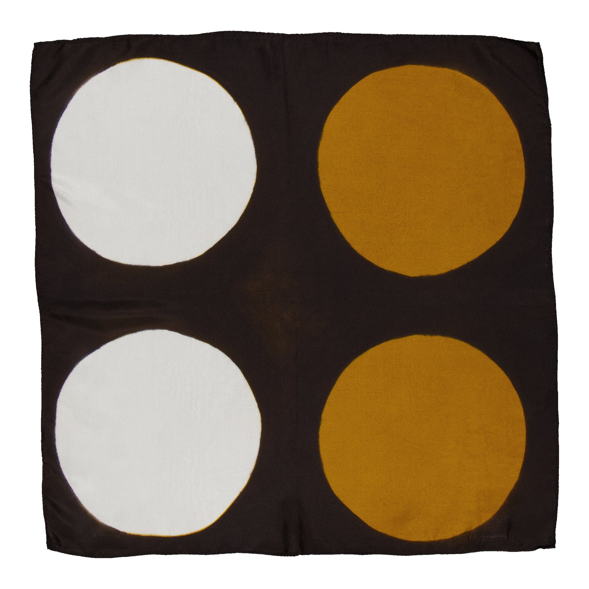 "PILE", bandana en twill de soie. Larges pastilles sur-teintes.