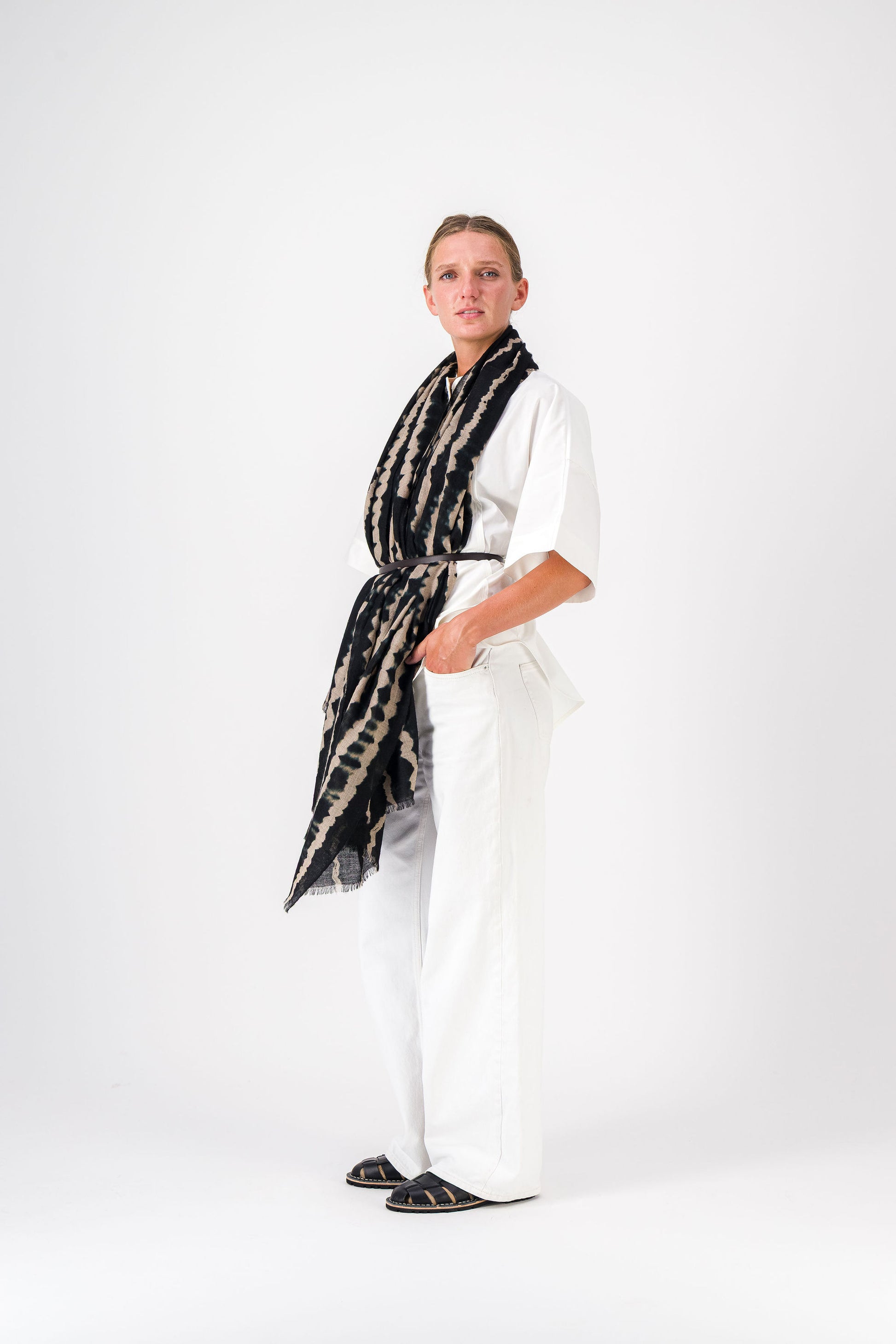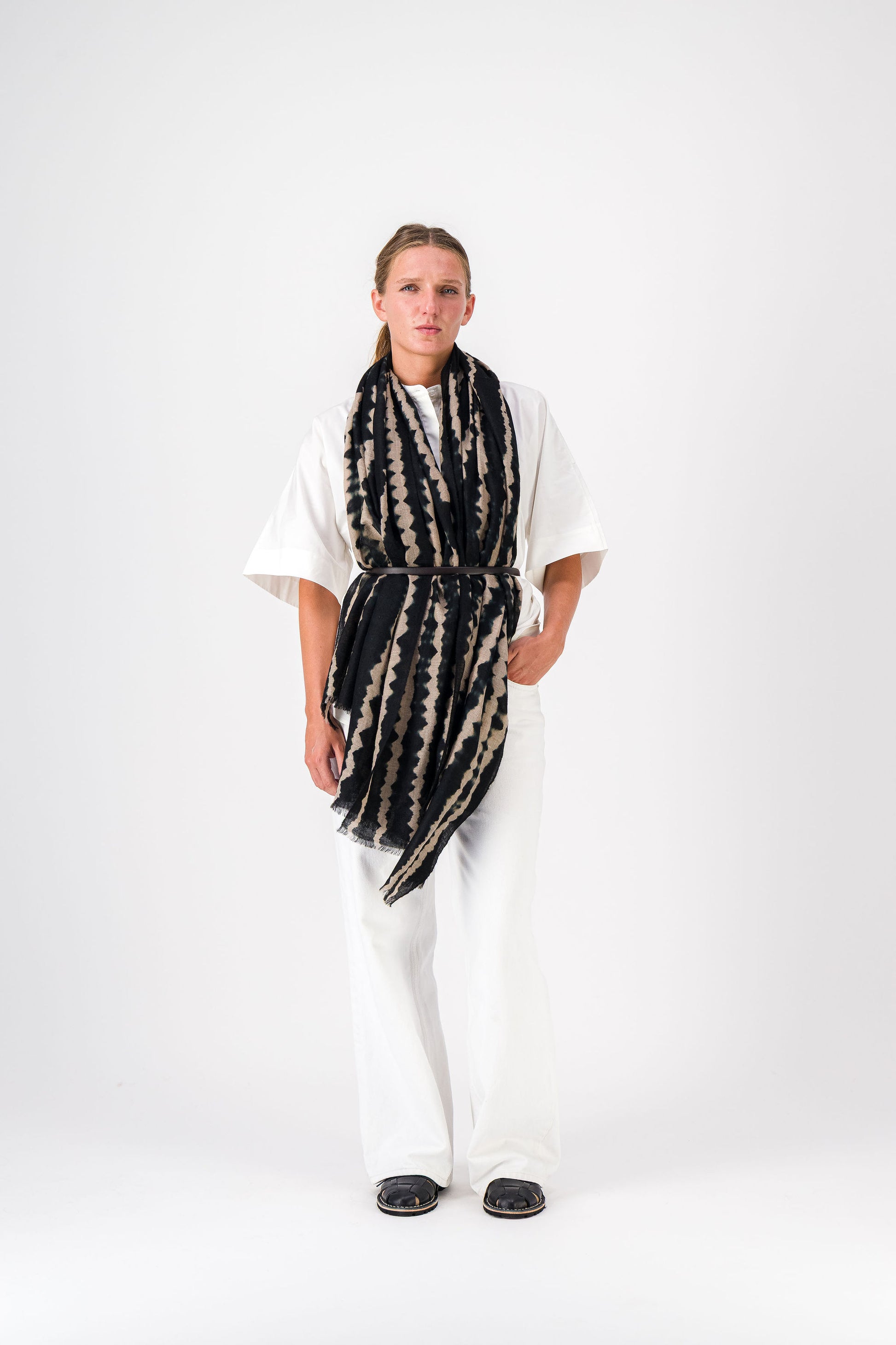 RIVE - shibori cashmere shawl BLACK