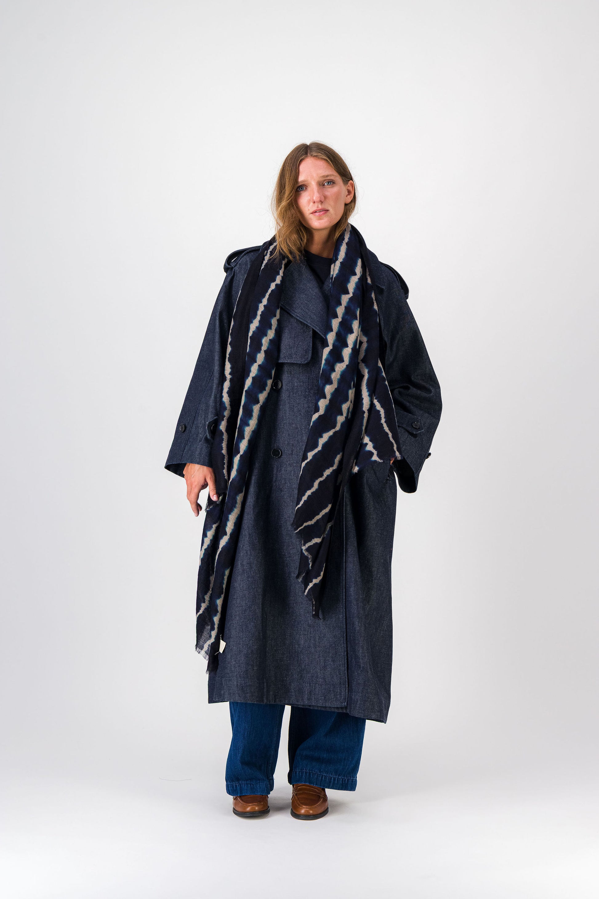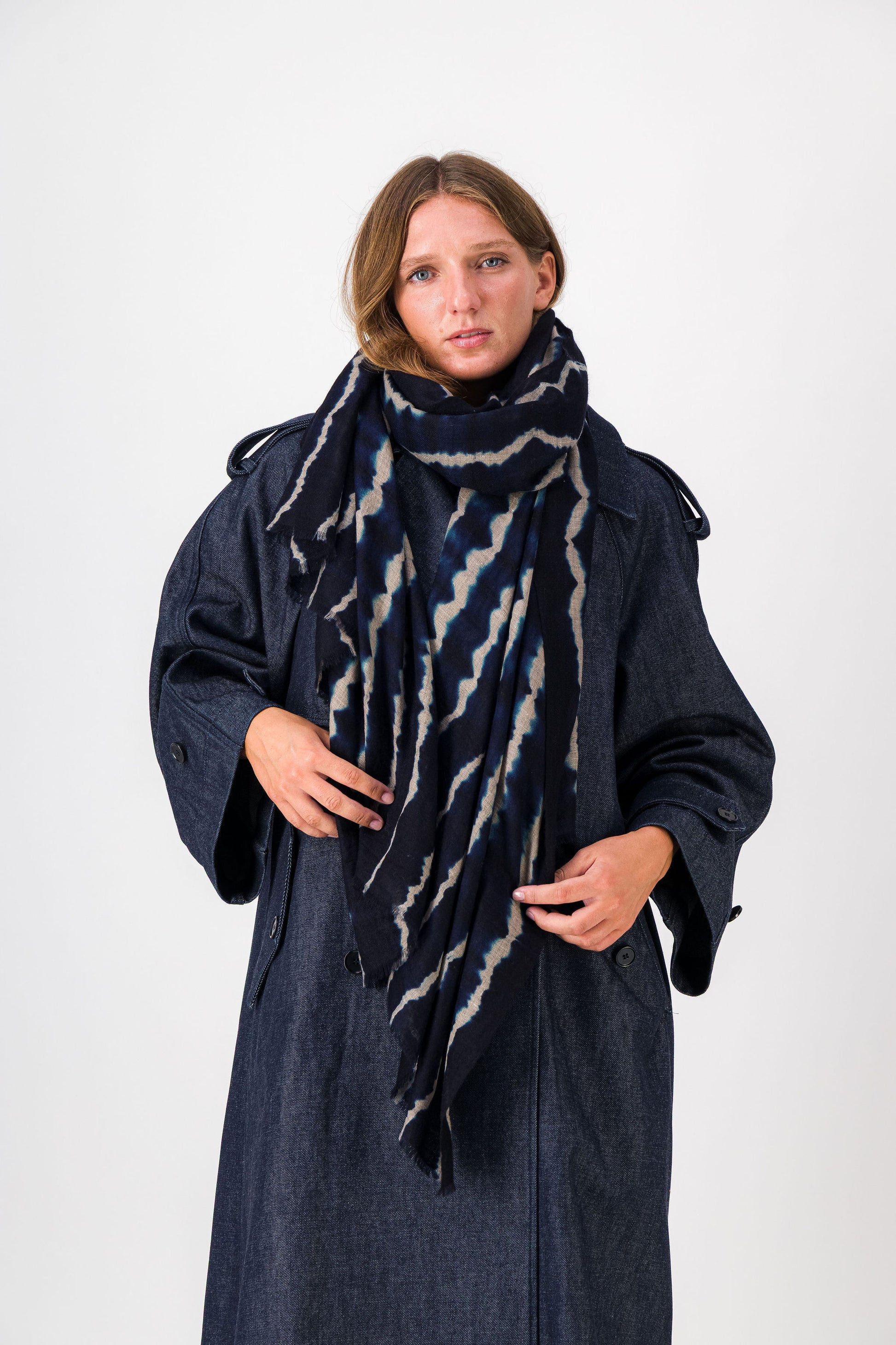 RIVE - shibori cashmere shawl INDIGO BLUE
