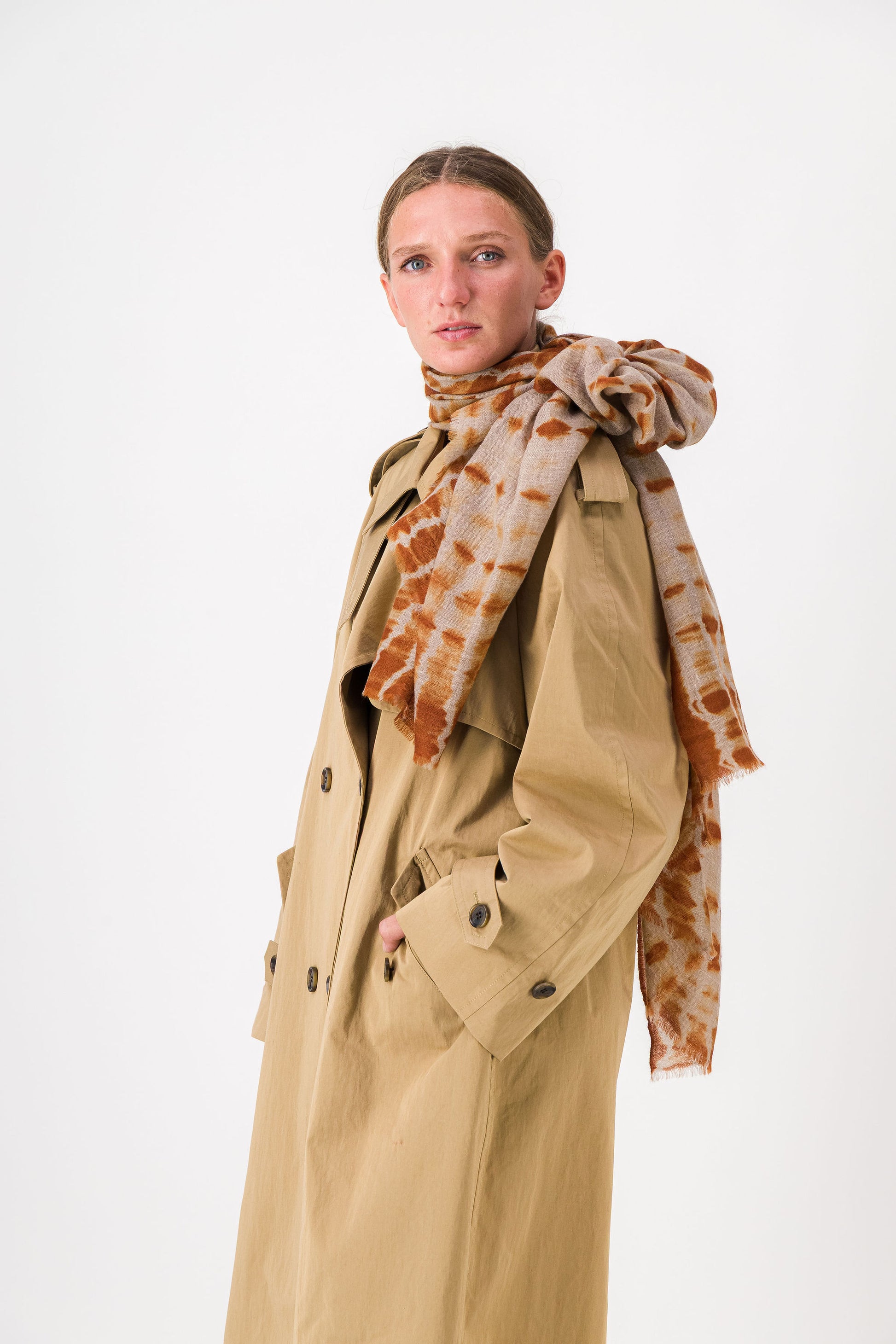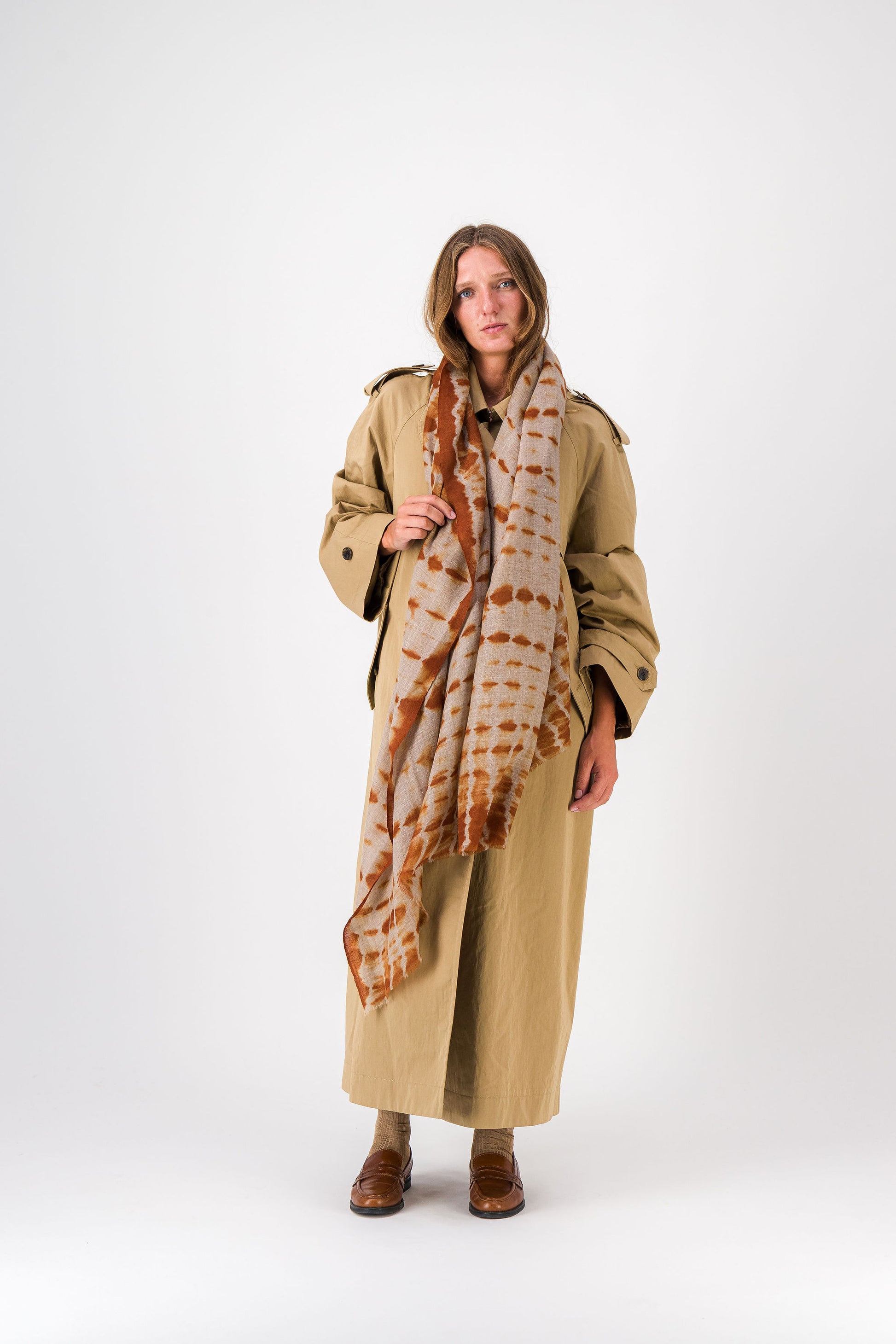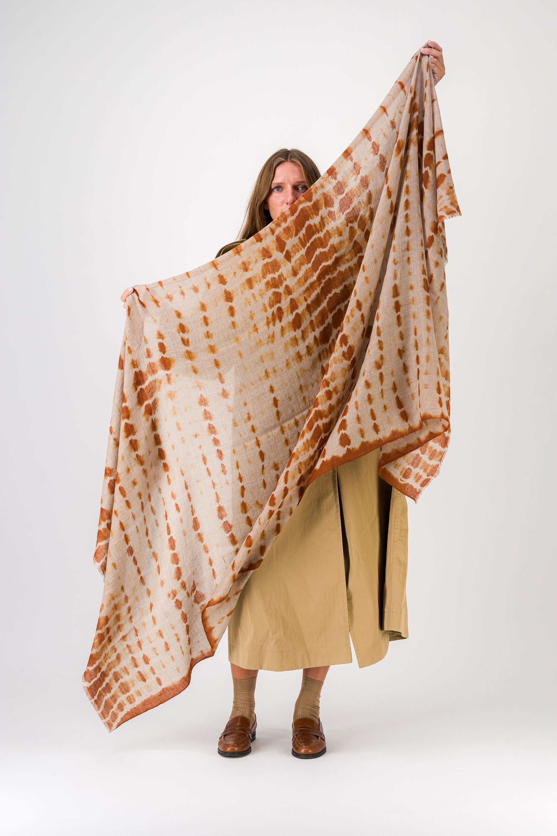 RIVE - shibori cashmere shawl COGNAC