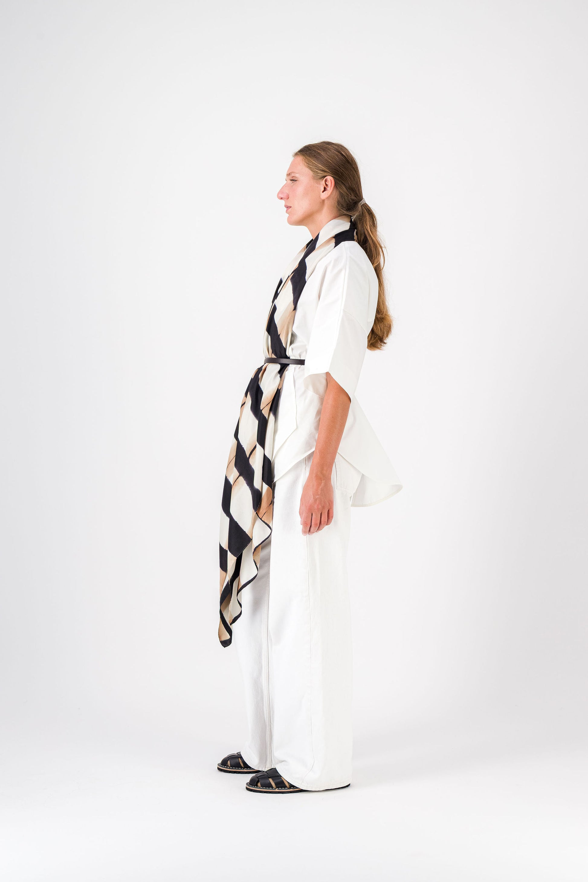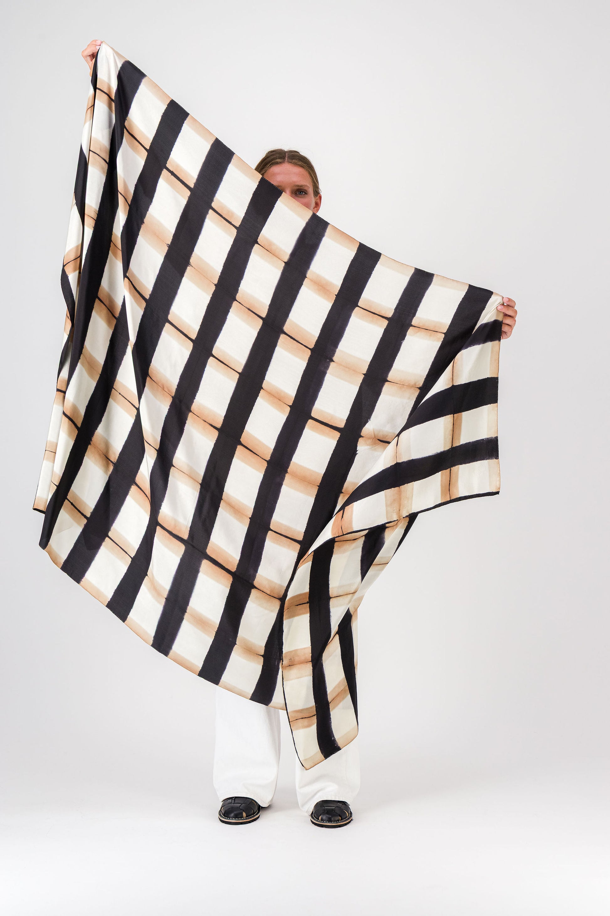 SINOPLE - SILK SCARF BLACK & KRAFT