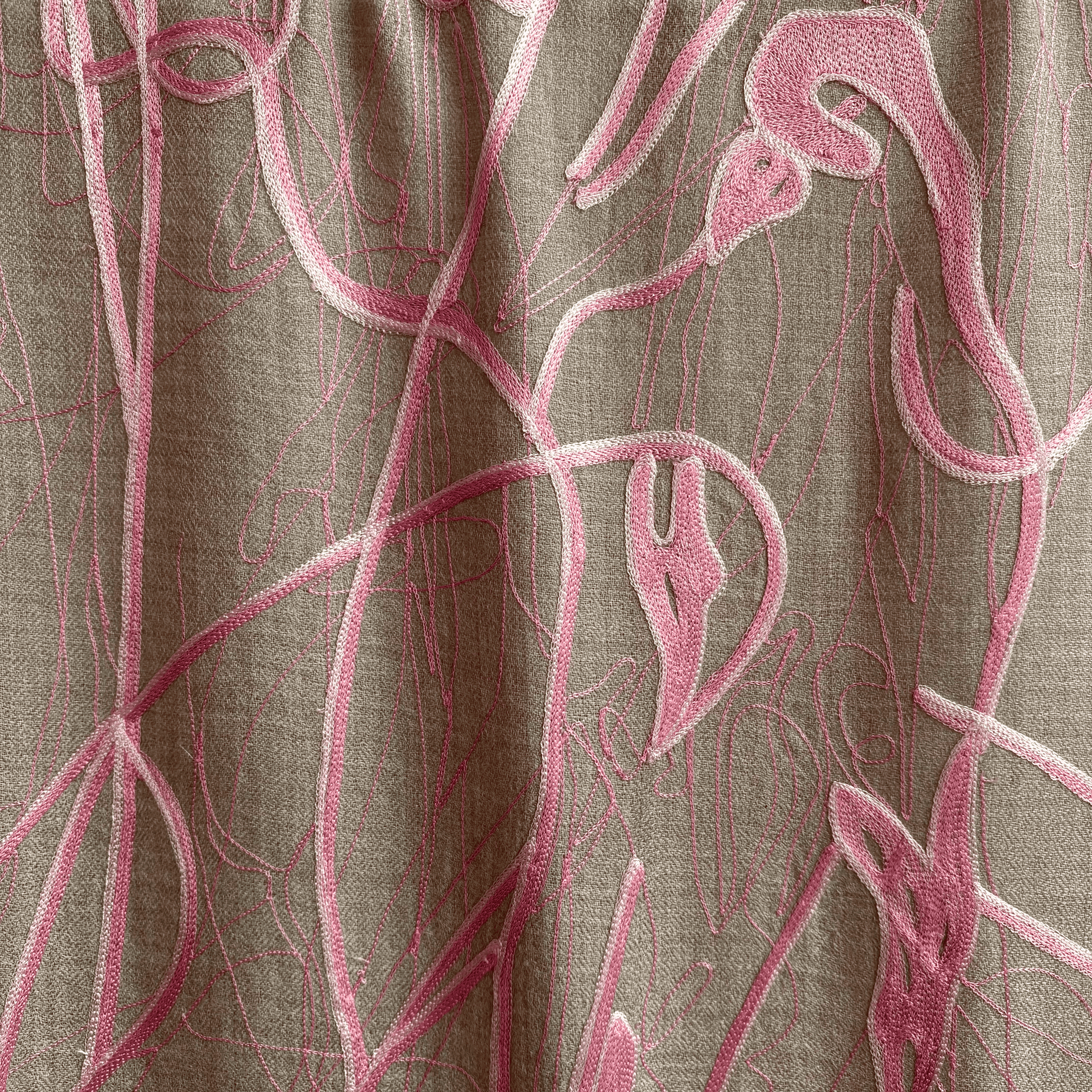 “SPLASH”, étole en laine merino, brodée à Srinagar. Motif inspiré du "dripping". Légèrement effrangé aux extrémités.
