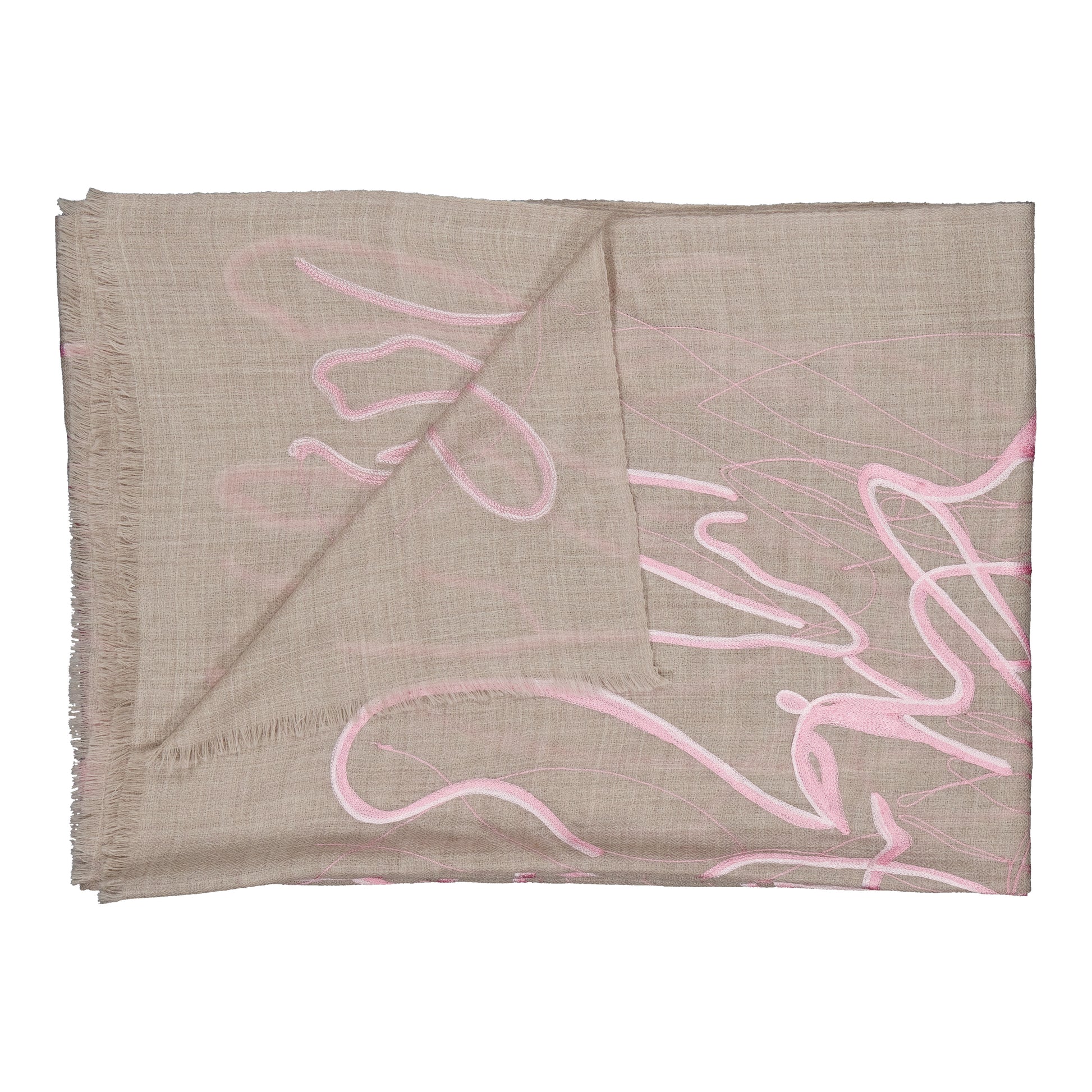 “SPLASH”, merino wool stole, embroidered in Srinagar. Inspired by "dripping". Lightly fringed at the bottoms.