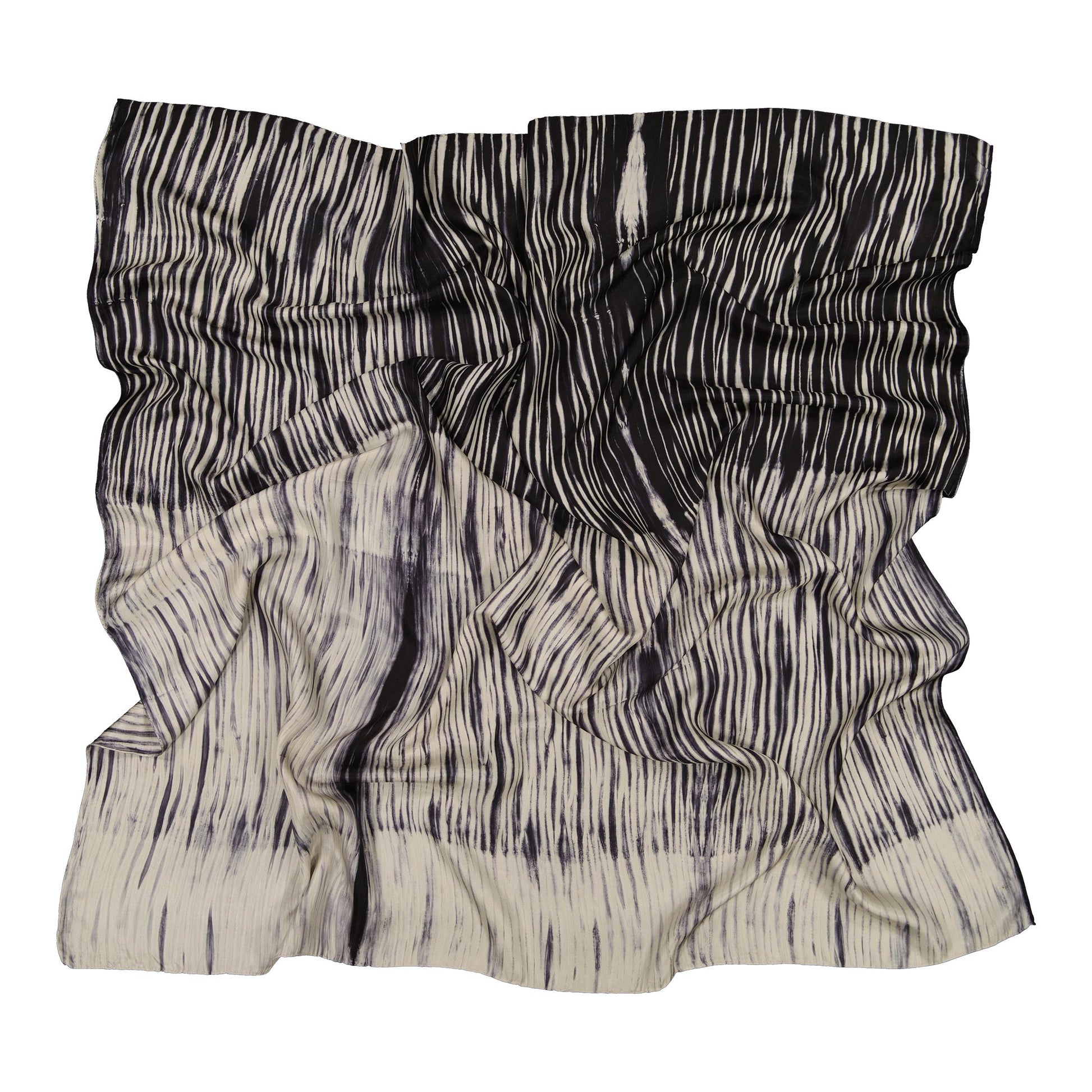 A large silk square, using an artisanal dye process: “Arashi shibori”