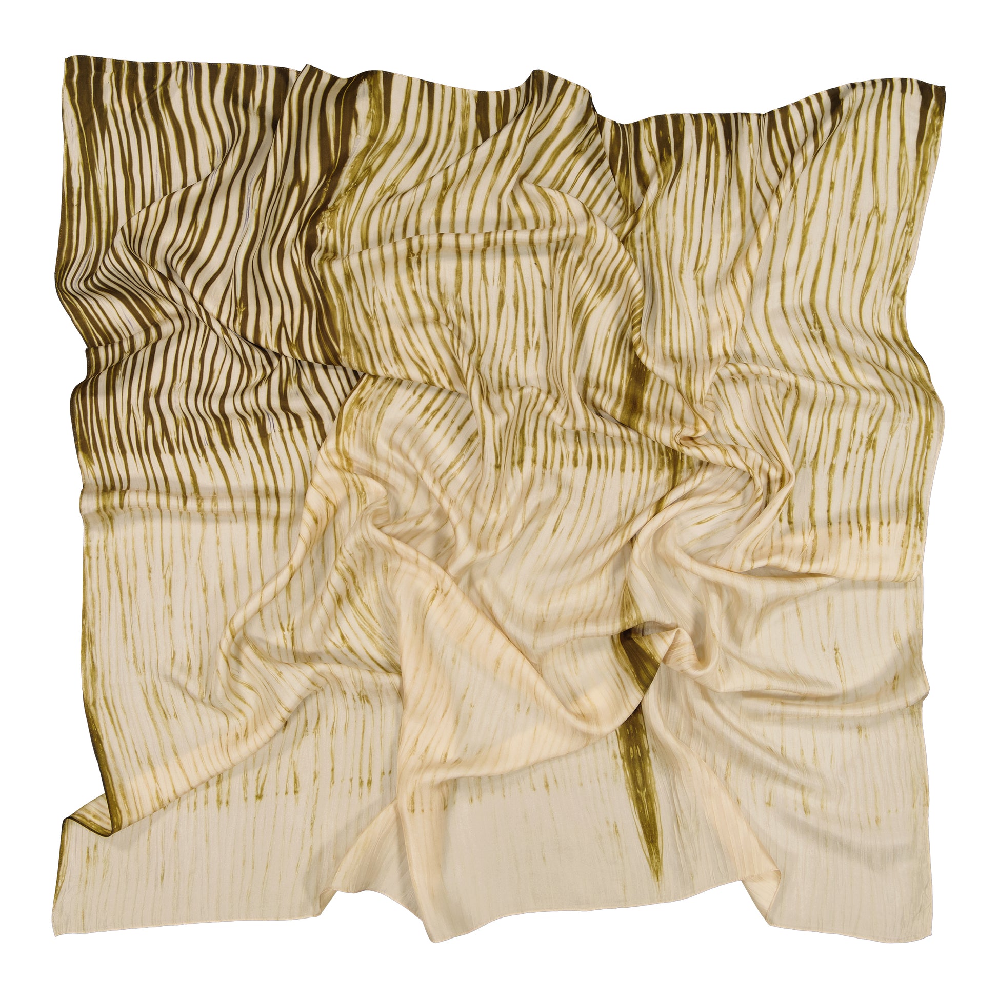A large silk square, using an artisanal dye process: “Arashi shibori”