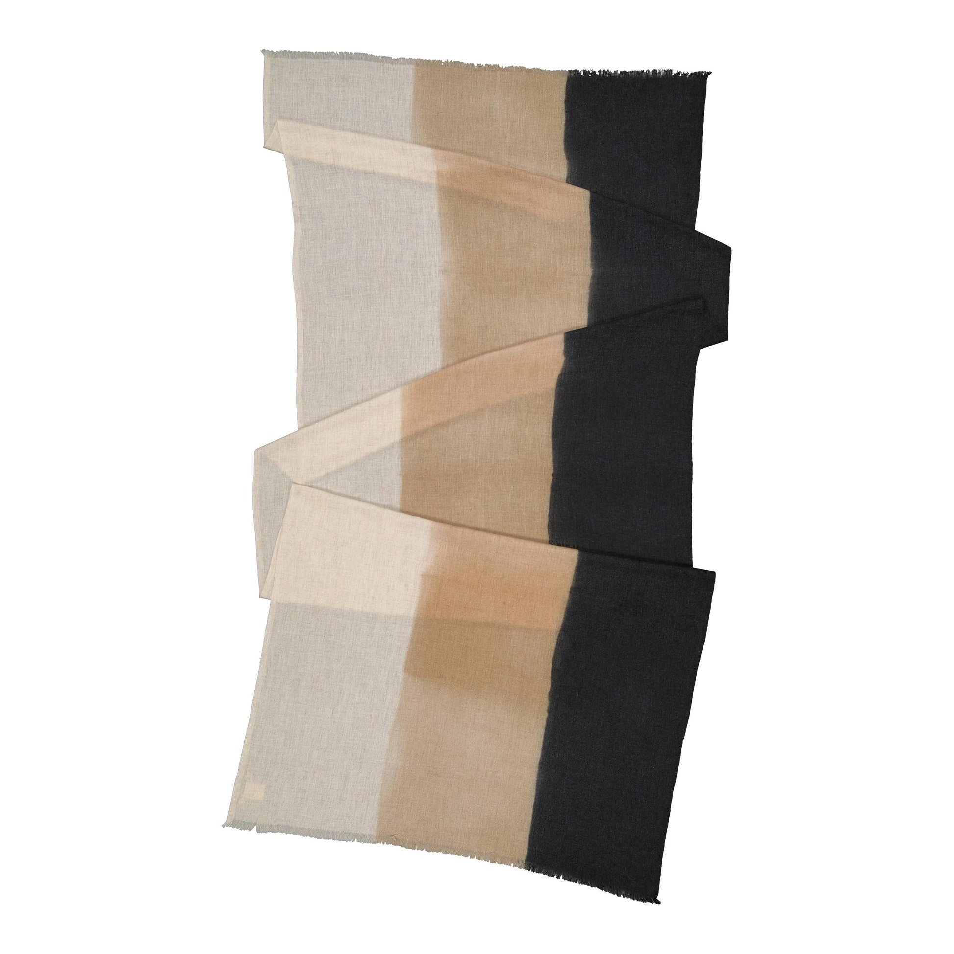 TRIO, écharpe tissée main au Kashmir. Teinte à la réserve selon la technique japonaise "Itajime". Toucher nuage. Chaque dessin est unique.
